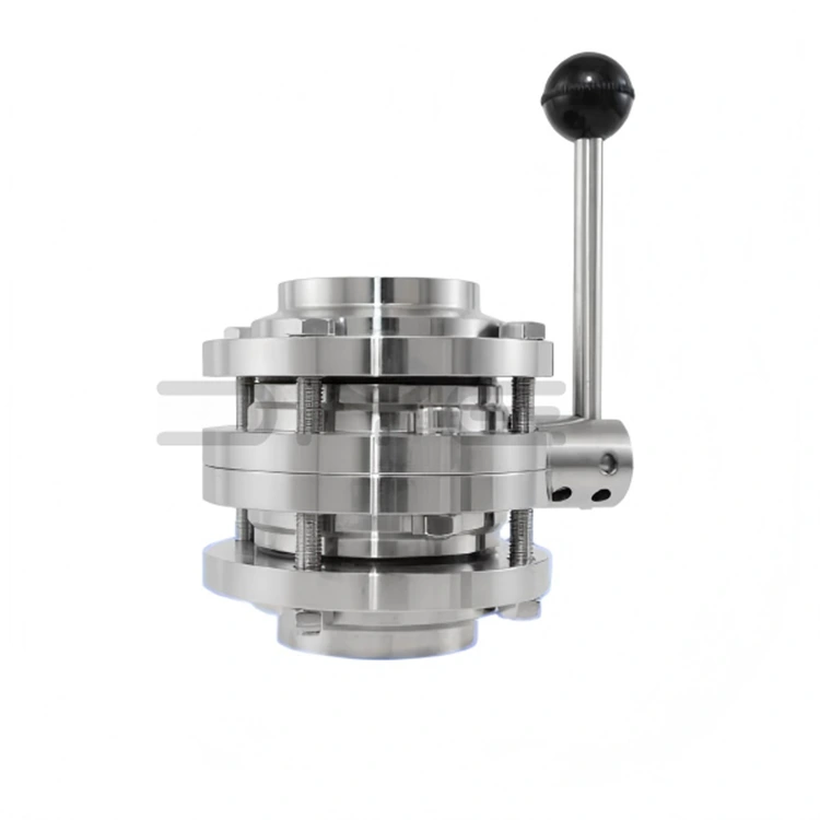 శానిటరీ 3-పీస్ సీతాకోకచిలుక వాల్వ్ ఒక క్లాసిక్ స్ప్లిట్ త్రీ-పీస్ స్ట్రక్చర్ను కలిగి ఉంటుంది, ఇందులో సెంట్రల్ వాల్వ్ బాడీ, రెండు కనెక్టింగ్ ఫ్లాంజ్లు లేదా రెండు వైపులా క్లాంప్లు మరియు అంతర్గత వాల్వ్ డిస్క్, స్టెమ్ మరియు సీల్స్ ఉంటాయి. ఇంటిగ్రేటెడ్ సీతాకోకచిలుక కవాటాలతో పోలిస్తే, దాని అతిపెద్ద ప్రయోజనం పూర్తిగా వేరుచేయడం. నిర్వహణ మరియు శుభ్రపరచడం మొత్తం పైప్లైన్ను విడదీయడం అవసరం లేదు; రెండు చివర్లలో బిగింపులు లేదా బోల్ట్లను వదులు చేయడం వలన పూర్తిగా శుభ్రపరచడం, క్రిమిసంహారకము చేయడం మరియు హాని కలిగించే భాగాలను మార్చడం, పనికిరాని సమయం మరియు నిర్వహణ ఖర్చులు గణనీయంగా తగ్గుతాయి.