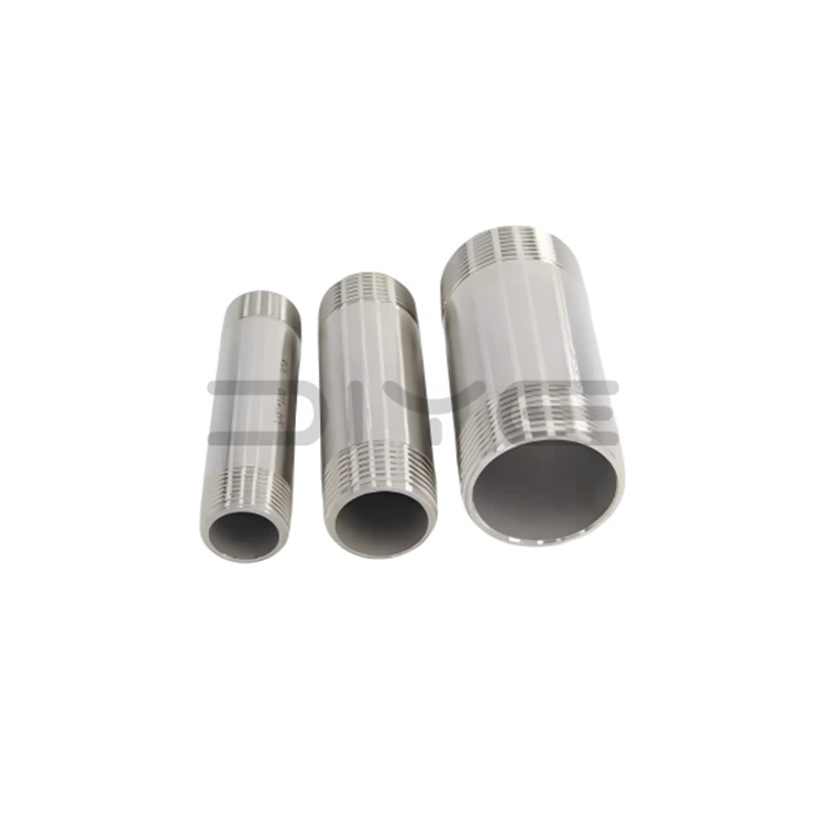 స్టెయిన్లెస్ స్టీల్ బారెల్ నిపుల్ యొక్క డబుల్-ఎండ్ ఎక్స్టర్నల్ థ్రెడ్ డిజైన్ రెండు చివర్లలో అంతర్గతంగా థ్రెడ్ చేసిన ఫిట్టింగ్లను సురక్షితంగా కలుపుతుంది, అతుకులు లేని పొడిగింపు మరియు స్ట్రెయిట్ పైప్ విభాగాలను స్ప్లికింగ్ చేస్తుంది. సుదూర ద్రవ రవాణా వ్యవస్థలను నిర్మించడానికి ఇది ఒక ముఖ్యమైన భాగం.