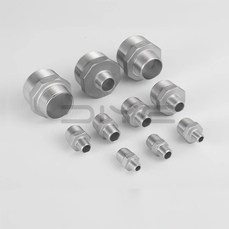 DIYE వాల్వ్ స్టెయిన్లెస్ స్టీల్ హెక్స్ నిపుల్ అనేది పారిశ్రామిక ఫ్లూయిడ్ పైపింగ్ సిస్టమ్లలో సాధారణంగా ఉపయోగించే ప్రామాణిక అమరిక. ఉత్పత్తి NPT (అమెరికన్ స్టాండర్డ్ టేపర్డ్ పైప్ థ్రెడ్), BSP (బ్రిటీష్ స్టాండర్డ్ పైప్ థ్రెడ్), మరియు PT (జపనీస్ టేపర్డ్ పైప్ థ్రెడ్) వంటి ప్రధాన స్రవంతి అంతర్జాతీయ థ్రెడ్ ప్రమాణాలకు అనుకూలంగా ఉంటుంది మరియు ప్రపంచవ్యాప్తంగా ఉన్న ప్రధాన స్రవంతి వాల్వ్లు మరియు పైపులకు సంపూర్ణంగా అనుగుణంగా ఉంటుంది. కస్టమర్ అవసరాలను తీర్చడానికి అనుకూలీకరించిన సేవలు కూడా అందుబాటులో ఉన్నాయి.